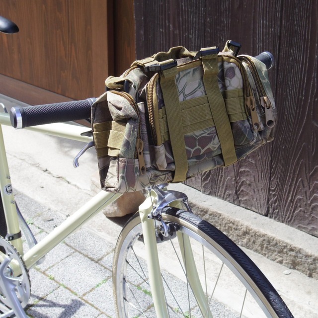 また、MOLLEストラップを駆使すれば工夫次第で大型サドルバッグ、フロントバッグとして自転車に取付けたりもできます。
