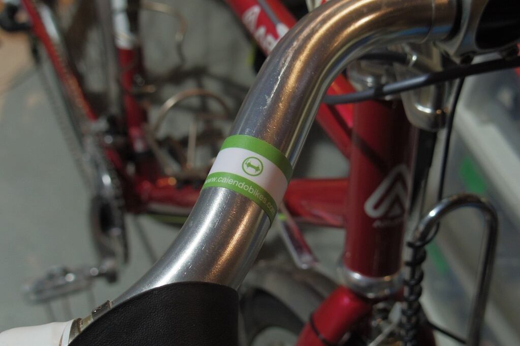 25.4mm以下のハンドルバーなど、細いものに使用する場合には写真のように両サイドを切断すると貼りやすくなります。上下の白い〇を目印に切断してください。