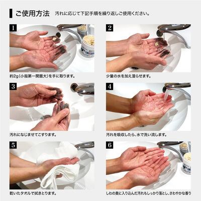 研磨剤にはウッドパウダーを使用しています。1回の使用量は小指の先程度、約2gです。