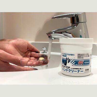 業務用アイテムとして実績のあるチップトップハンドクリーナーの150ml入りのミニボトルです。研磨剤入りでオイル、グリスなど通常のハンドソープでは落ちにくい汚れもしっかり落とせます。